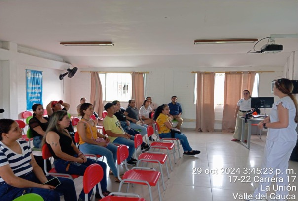 El día lunes 18 de noviembre de 2024 se llevó a cabo la segunda jornada lúdico participativa denominada “Saber comer: Estrategias para una nutrición segura y saludable” dirigido a padres de familia de estudiantes de diferentes grados de la Institución Educativa Magdalena Ortega, del municipio de La Unión, Valle del Cauca. Se brindaron definiciones de seguridad alimentaria y nutricional, Buenas Prácticas de Manufactura (BPM), Alimentación Saludable y peso ideal, abarcado desde la primera infancia y se finaliza creando ejemplos de loncheras saludables por parte de los padres basándose en la información brindada. la población beneficiaria fueron en total 60 personas, de las cuales 44 fueron femeninas,16 masculinos, entre rangos de edades, de 12 a 18 años, 19 a 26 años, 27 a 59 años de edad y mayores de 60 años.